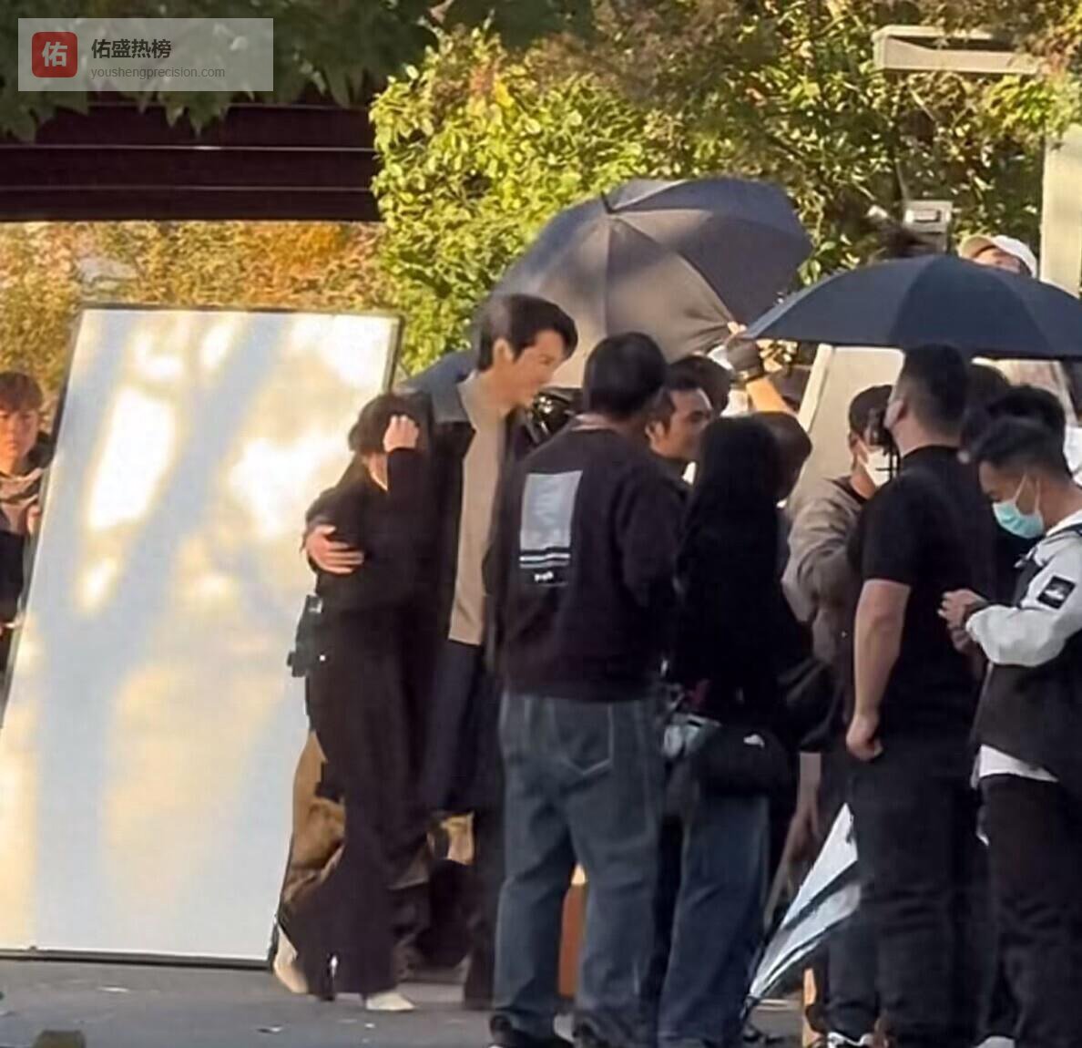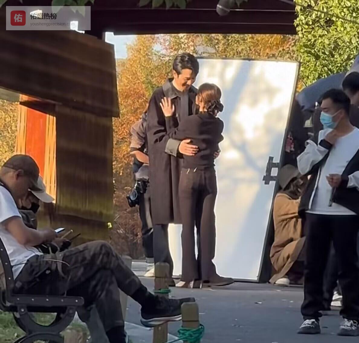 说实话,演员也不容易。 你看彭冠英,一开始明显有点放不开,旁边那么多人盯着呢,换谁不紧张。 但人家毕竟是专业干这个的,调整了一下,还是和赵露思把戏给拍了。 亲上去那一刻,好家伙,现场直接炸了,尖叫的,鼓掌的,那叫一个热闹。 可拍完了呢? 赵露思一发现有人拍视频,立马就不好意思了,彭冠英也是反应快,搂着她就走,感觉就是想赶紧逃离这个被围观的中心。 这画面看着是挺有爱的,但仔细想想,演员在工作,却搞得像在街头表演,还得应付观众的热情,这工作环境也太特别了。