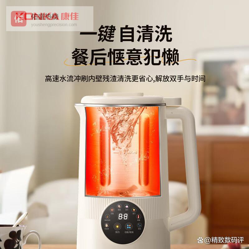 它还配备48叶的刀头,粉碎速度快,效果更彻底,豆浆更细腻顺滑。加热和保温功能也很实用,熬好的豆浆能保持温度,让你随时享用新鲜热饮。再加上智能清洗和预约功能,使用起来既方便又省事,让日常更加轻松舒适。