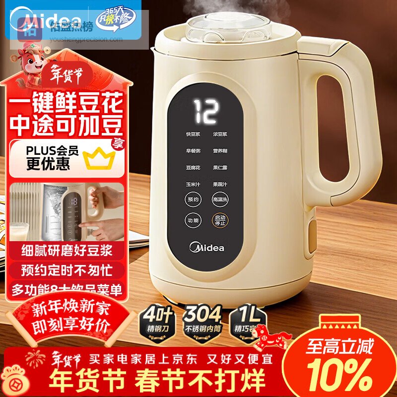 点评:这款美的豆浆机真的很适合1-2人家用,容量刚好,不大不小,放在厨房一点也不占地,平时想喝豆浆就按个按钮,特别方便。它的免过滤、免煮功能,让你不用担心豆渣的问题,喝着丝滑细腻,直接就能喝,省去了很多麻烦。还有自动清洗功能,轻轻一按,机器自己洗得干干净净,省时省力,特别实用。如果你喜欢做豆花或多样饮品,它的多功能菜单也能轻松搞定,满足不同口味需求。
