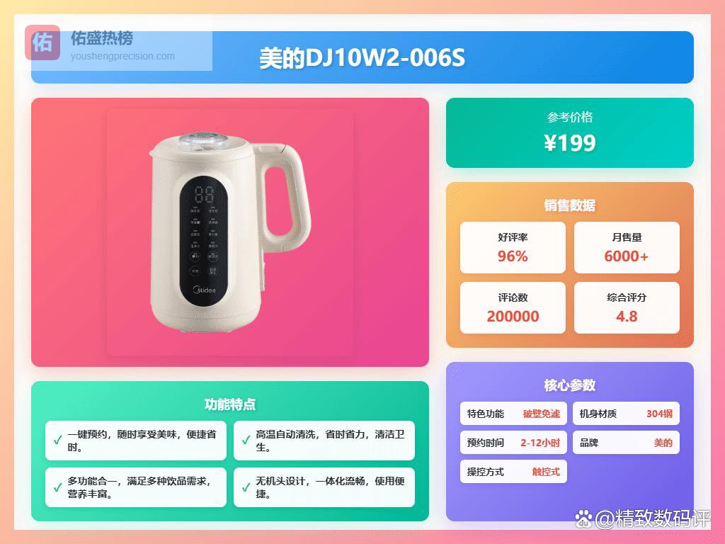 点评:这款扬子扬子2025静音破壁机,操作起来特别方便,触控面板反应灵敏,随心设置各种功能,用起来毫不费劲。无论是做豆浆还是果汁,都能轻松搞定,还支持预约,早上醒来就能喝到新鲜的饮品,非常贴心。