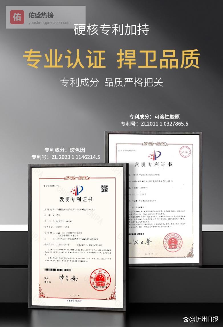 中国发明专利(专利号:ZL 201110327865.5)——可溶性胶原。如果玻色因是在搭建“框架”,可溶性胶原则是在往框架里“填砖”。它的小分子结构决定了它能穿透至更深的层次,直接补充皮肤自身流失的胶原蛋白。两个专利成分的组合,不是简单的“1+1=2”,而是“结构框架+填充材料”的协同,让抗皱这件事从表层修饰走向深层构建。
