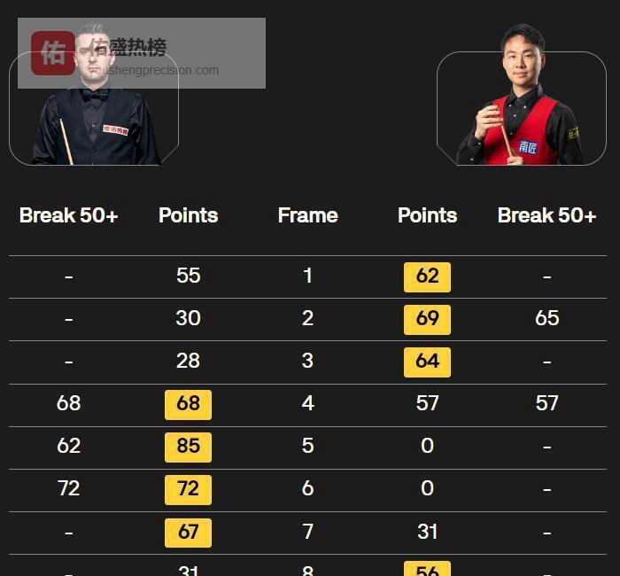 前三局徐思拿下,你看比分:62-55、69-30、64-。 看出来了吗? 没有一杆制胜的暴力高分,全是扎实的、纠缠的、一杆一杆磨出来的优势。 这就是面对“磨王”塞尔比最正确的打法别想着一棒子打死,你得比他更能磨。