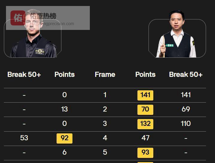 肖国栋赢利索夫斯基5-,过程更像一场教学课。 单杆141分开场,全程两杆破百外加多杆50+,进攻火力全开。 面对“小司机”这种同样以攻代守的球员,他给出了更凶悍的答案。 当两人风格相似时,比的其实就是谁更准、更狠、更稳定。