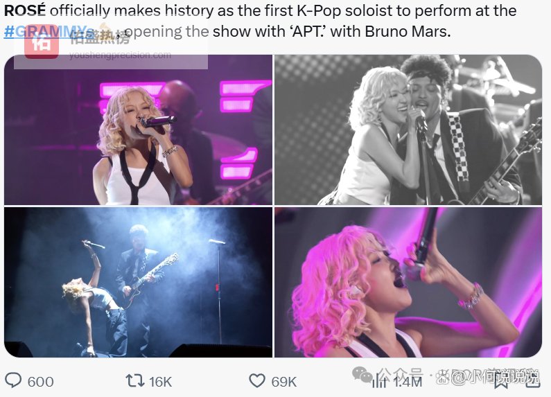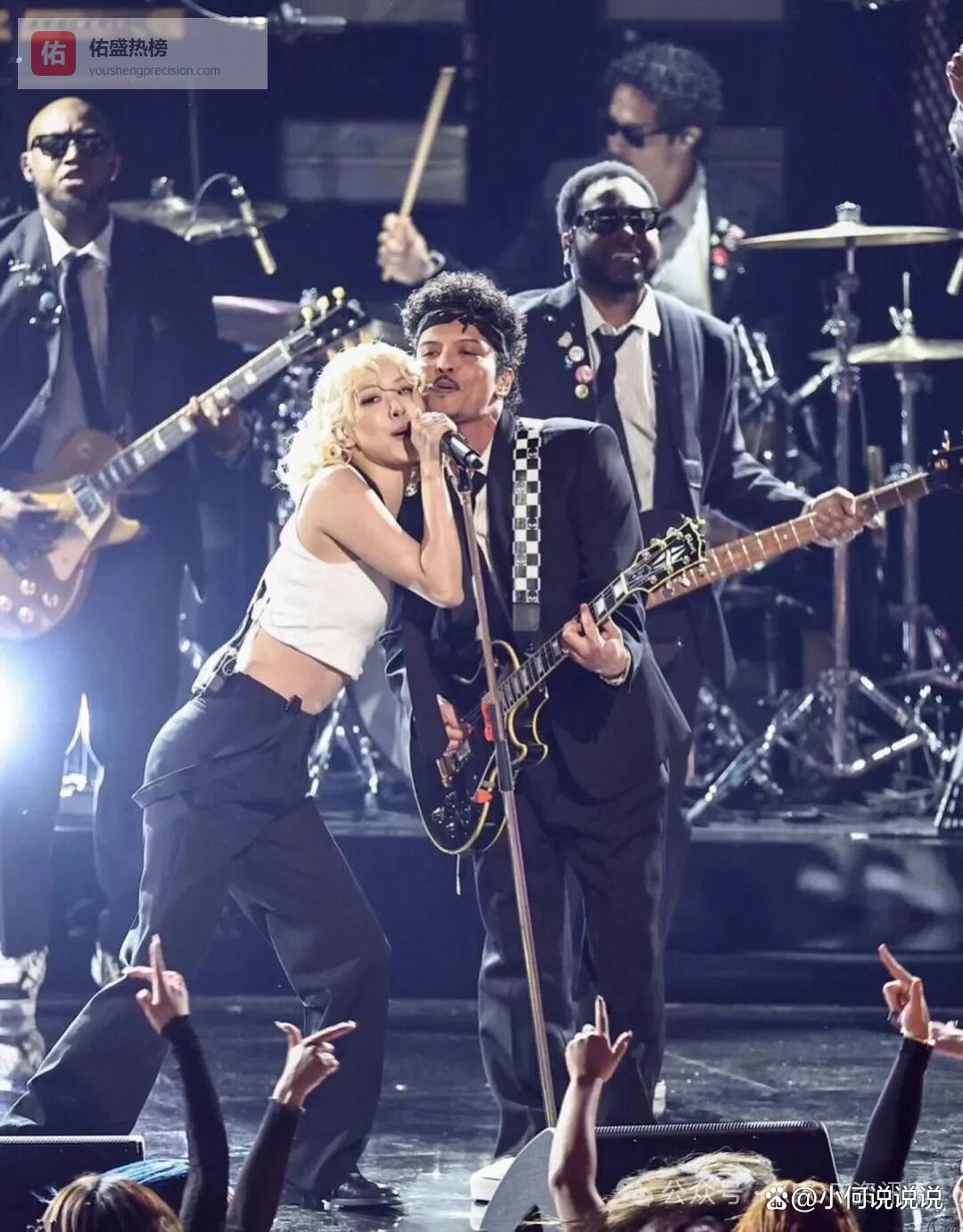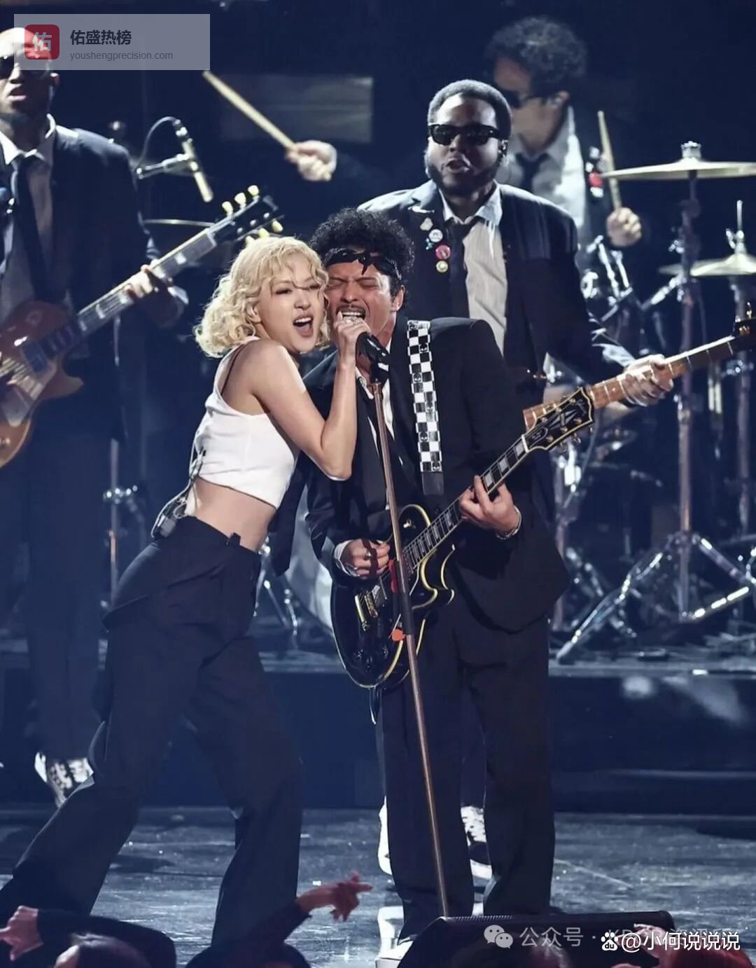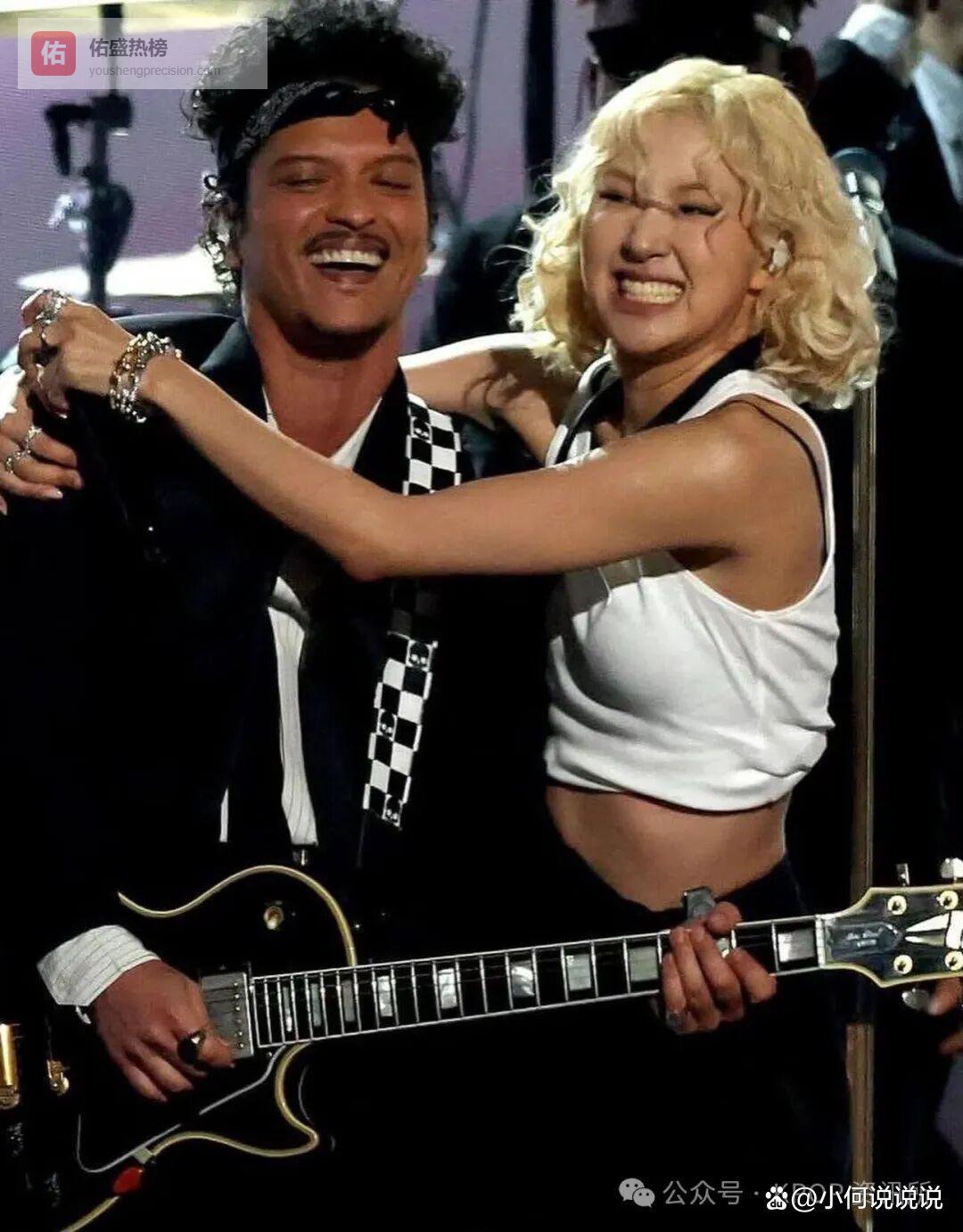 当天的舞台上,Rosé与Bruno Mars的互动同样引发热议。开场时的轻松互动、对《APT.》的重新编曲,都被认为让这段表演更像是一场成熟流行艺人之间的合作,而不是跨文化噱头。很多海外观众注意到,两人站在同一舞台上时,并不存在“谁在带谁”的感觉。