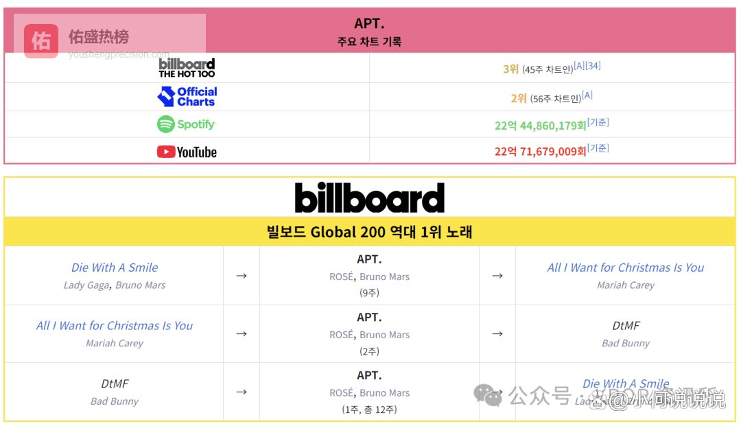 此前,《APT.》曾在MTV音乐录影带大奖上拿下年度歌曲,也在年终榜单中占据重要位置。