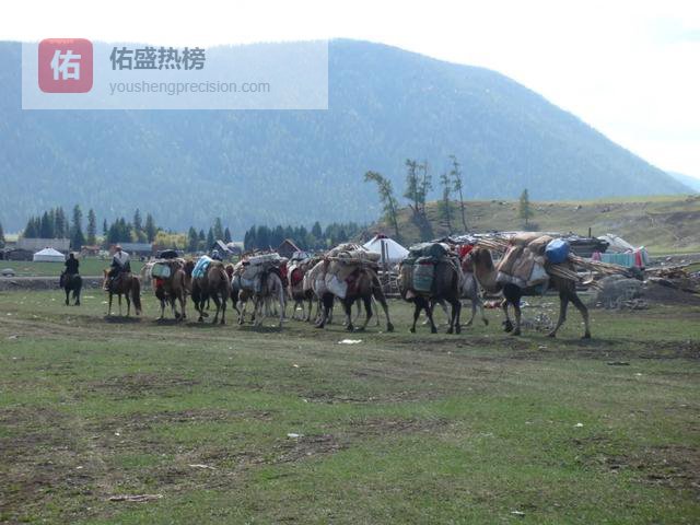一会儿山路,一会儿草原,走了大半天的路,终于来到了白哈巴河附近的那仁牧场,那仁牧场在一片广阔的山坳里,我们下了山坡转过一片松林,远远地看见一片毡房,一条路蜿蜒而去,路两边,甚至路中间都有一些古代墓葬。到达毡房前,已经是傍晚时分,准备转场的牧民还在搬家,有可能连夜离开这里。