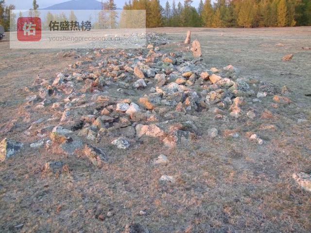 发现的石堆墓有的很大,封堆用石块堆积而成,很难想象当时没有发达运输工具的情况下,如何从山上运来这些石头,封堆堆积得很大,最大的直径可到100米,小的有6米。可能经过多次的祭祀形成的,也可能是许多人齐心协力一次堆积而成。