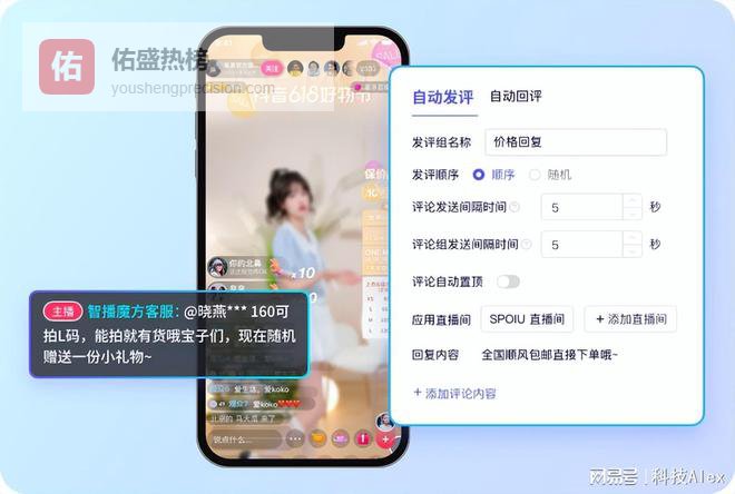 直播间冷场或者差评带节奏最麻烦。智播魔方的自动互动功能,相当于给你配了个免费的“气氛组”。话术预设: 提前写好一百条话术,直播时按顺序或随机自动发,直播间随时都很热闹。关键词秒回, 观众问“怎么发货”、“有没有优惠”,系统抓取关键词直接就回了。好评置顶, 把想让大家看到的评论钉在上面,这种细节对转化的帮助非常明显。