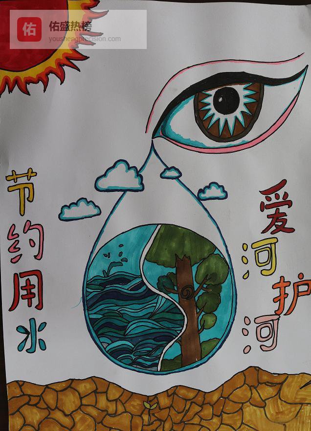 一滴水被画成爱心形状, 提醒孩子:爱河,先从节约开始。