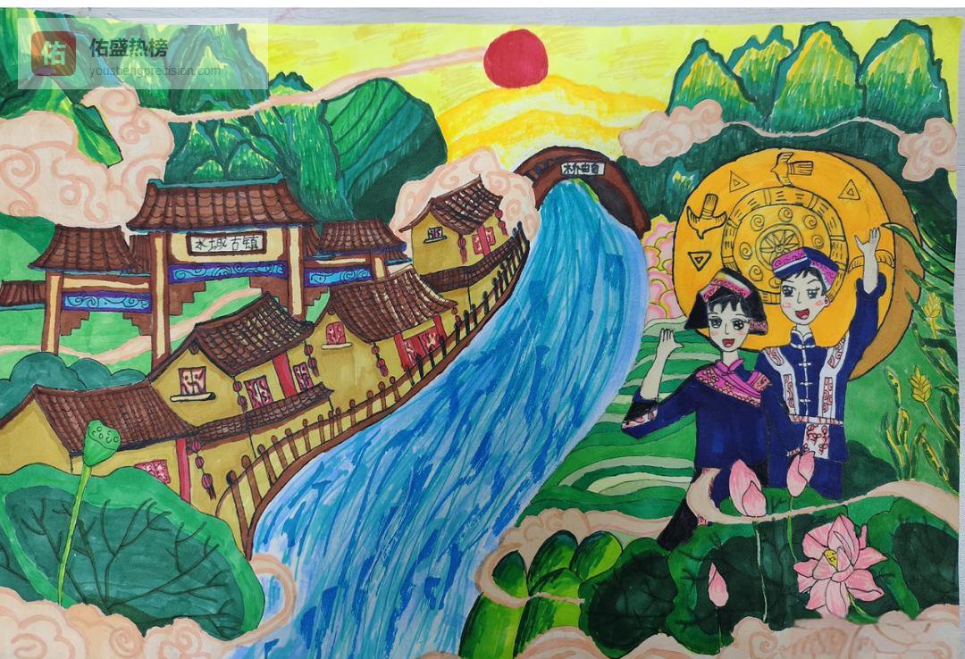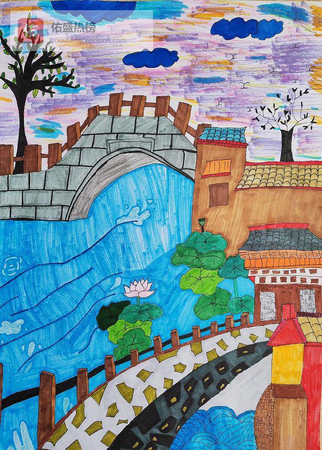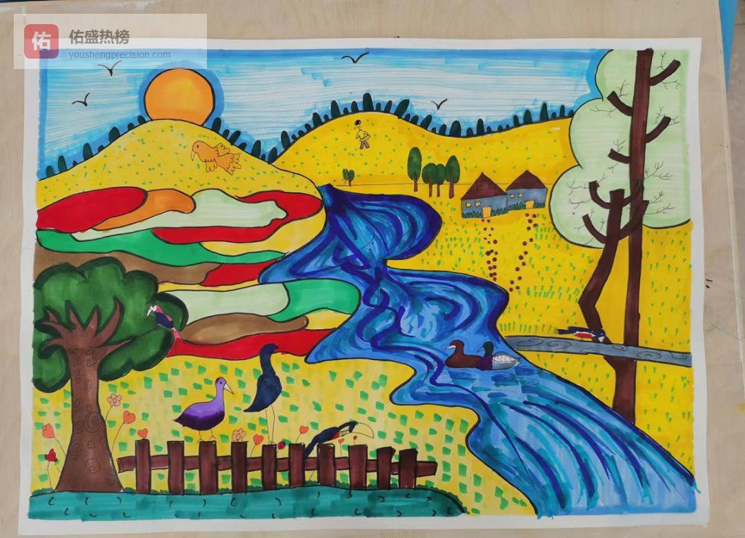 稚嫩的笔触里,一条清澈的小河绕村而过,岸边盛开的野花仿佛在提醒: 保护水环境,人人有责。