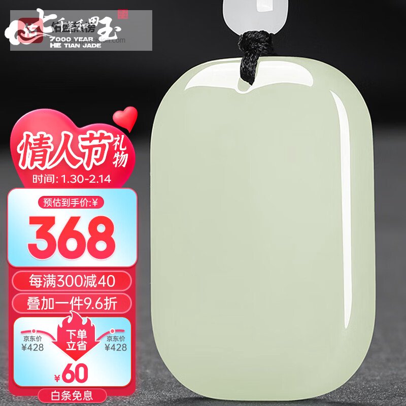 【京东自营】7000年和田玉吊坠平安无事牌男士女士晴水玉坠送礼物小号¥
