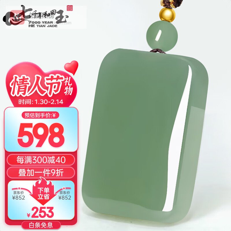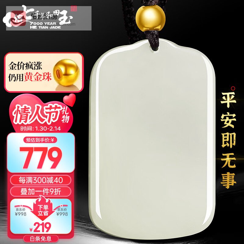【京东自营】7000年和田玉吊坠男女款平安无事牌玉坠玉牌小号20*30mm¥