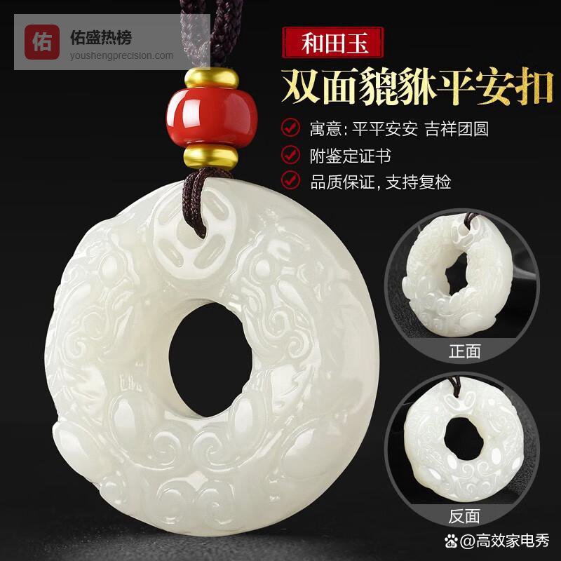 珍稀和田玉材质:选用7000年历史的和田玉,赋予吊坠天然的美感与非凡的收藏价值。每一件作品都是独特的艺术品,完美体现了传统与现代相结合的设计理念。柔和的光泽与丰富的色彩使佩戴者在各种场合都能散发独特魅力,吸引众人的目光,成为人群中的焦点。