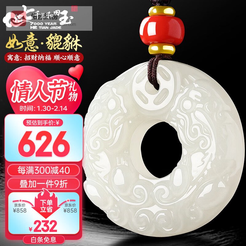 【京东自营】7000年和田玉吊坠貔貅吊坠平安扣男女款约36mm¥