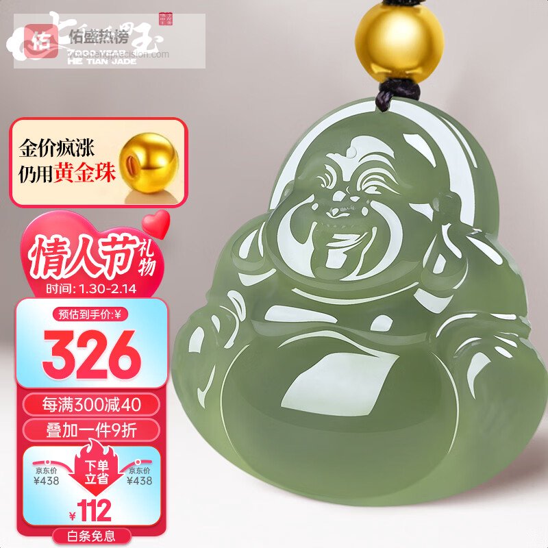 【京东自营】7000年和田玉吊坠厚款玉佛公女款足金金珠款高冰晴水情人节礼物约25mm¥