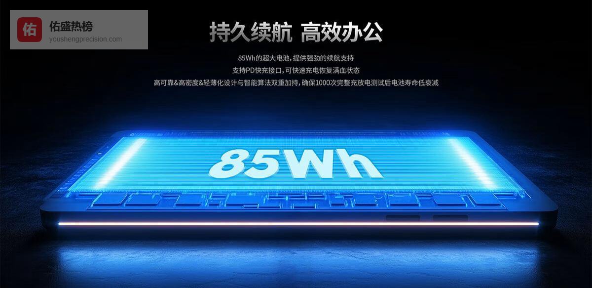 内置的85Wh大容量锂电池,提供了长达8-10小时的续航能力。这意味着,即使你从早会开到晚会,或者在出差的高铁上处理紧急邮件,也无需时刻寻找电源插座,彻底治愈“电量焦虑症”。