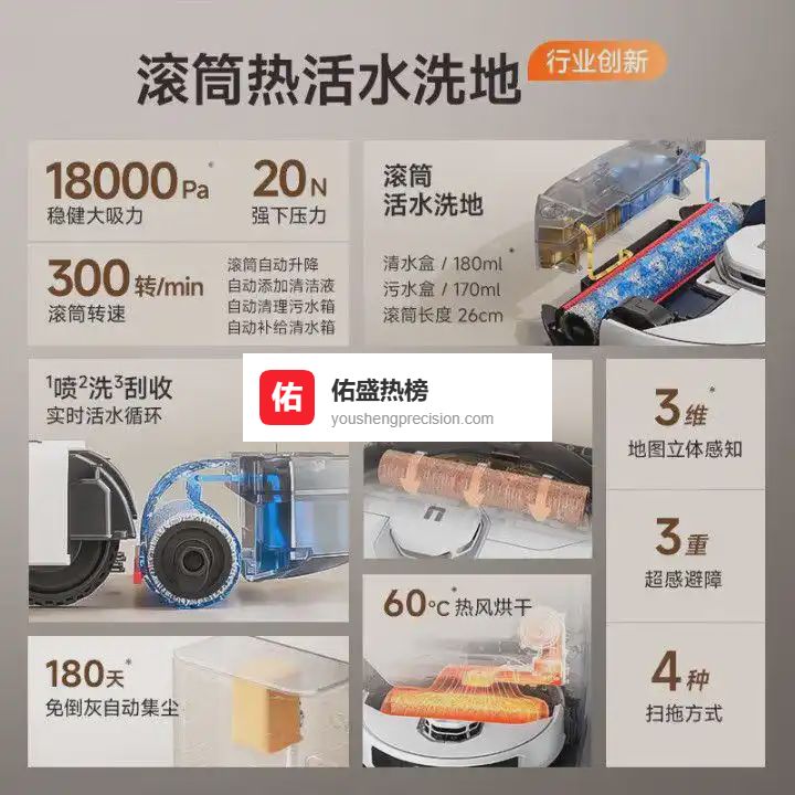 2️⃣全能一体化基站:集多种功能于一身,从自动清洗到除菌、补水,到热风烘干,全程无需人工干预,实现真正的智能家居体验。让清洁工作变得更加简单明了。
