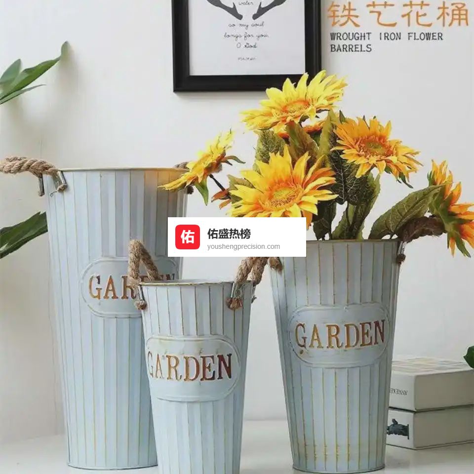 二、复古美学担当:做旧铁皮双耳花桶当第一束晨光落在那斑驳的金属表面时,你突然理解了什么叫"时光淬炼的美"——这款做旧铁皮花桶用工业风的设计语言,讲述着关于岁月与重生的故事。