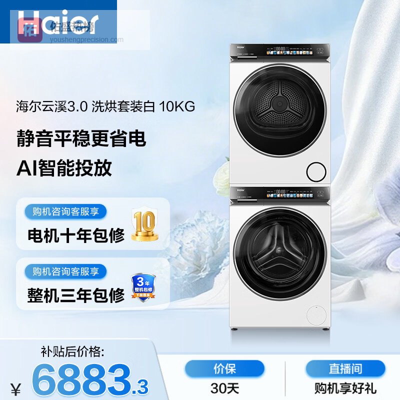 推荐入手:海尔云溪583W洗烘套装10KG滚筒洗衣机+热泵烘干机