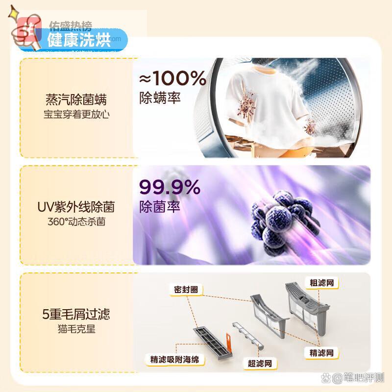 4️⃣深度净螨护理技术:内置除螨程序,高效清除床品和衣物中的顽固尘螨,创造健康的生活环境。适合关注家居卫生的人群,通过深层清洁,为全家提供更洁净、健康的睡眠空间,使你在细节之中感受关怀。