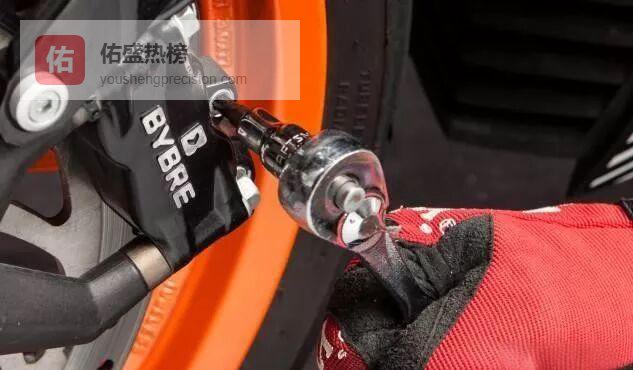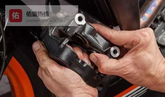 盘式制动器的分泵是用两颗螺栓锁在支架上的,支架再靠另外两颗螺栓咬在轴承上。松掉分泵螺栓→把分泵连同软管一起挪到旁边,软管别折死角,否则回油不畅。活塞杆上那道亮银色密封圈最怕沙粒与腐蚀剂,拆一步洗一步,养成习惯。