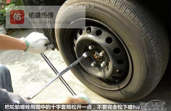 用轮胎扳手把每个螺栓松半圈,别全拧掉;