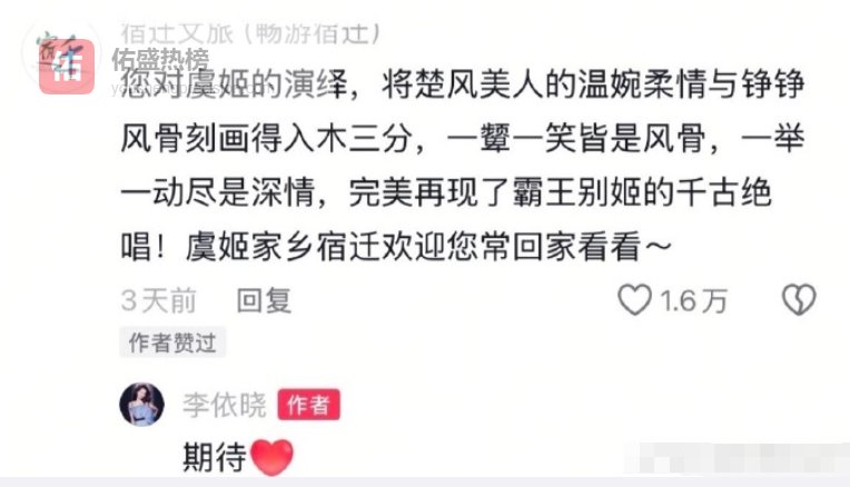 宿迁文旅主打“听劝”,当天便回复“静候霸王回家”,不到一周就正式向何润东和虞姬扮演者李依晓发出邀约