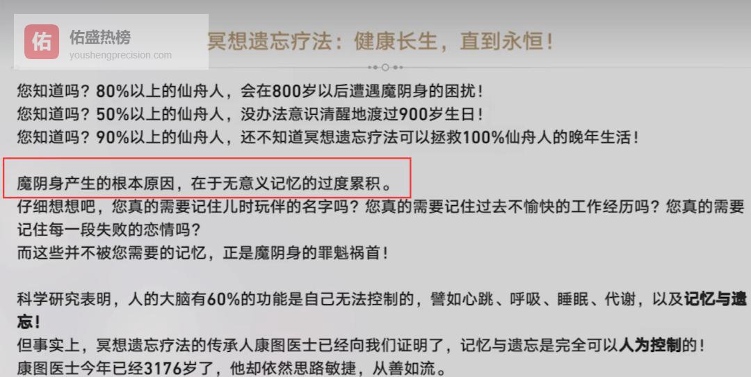 3.1 ► 广告与官方话本里的暗示 一则来路不明的广告率先抛出“记忆超载”论: