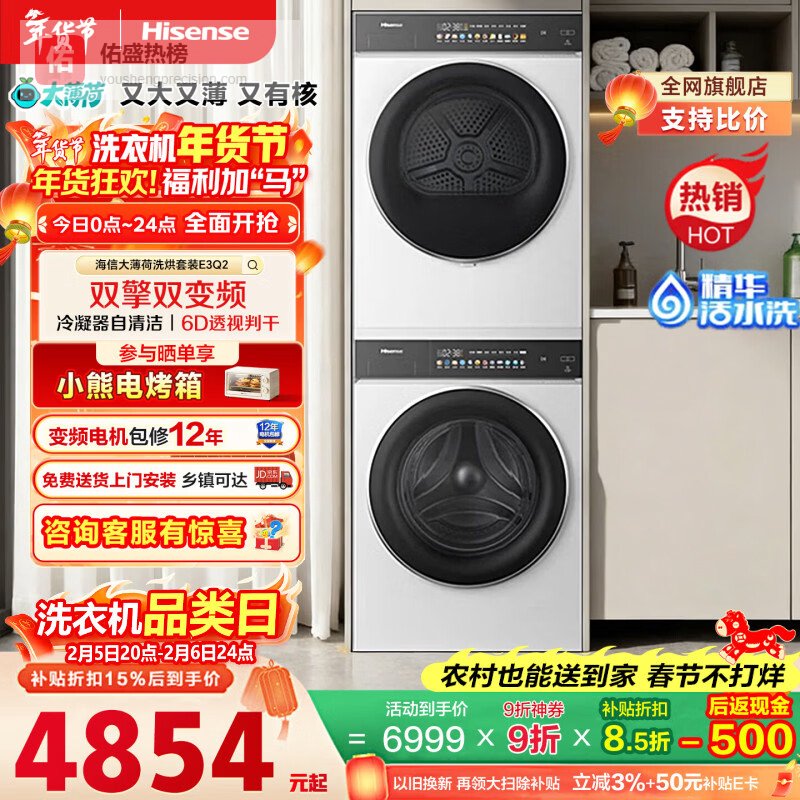 推荐入手:海信大薄荷洗烘套装E3Q2 10KG滚筒洗衣机