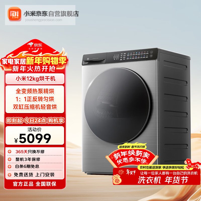 【京东自营】米家小米热泵式烘干机Pro12公斤家用干衣机烘衣机超薄全嵌混动速热国家补贴H120MJ1¥