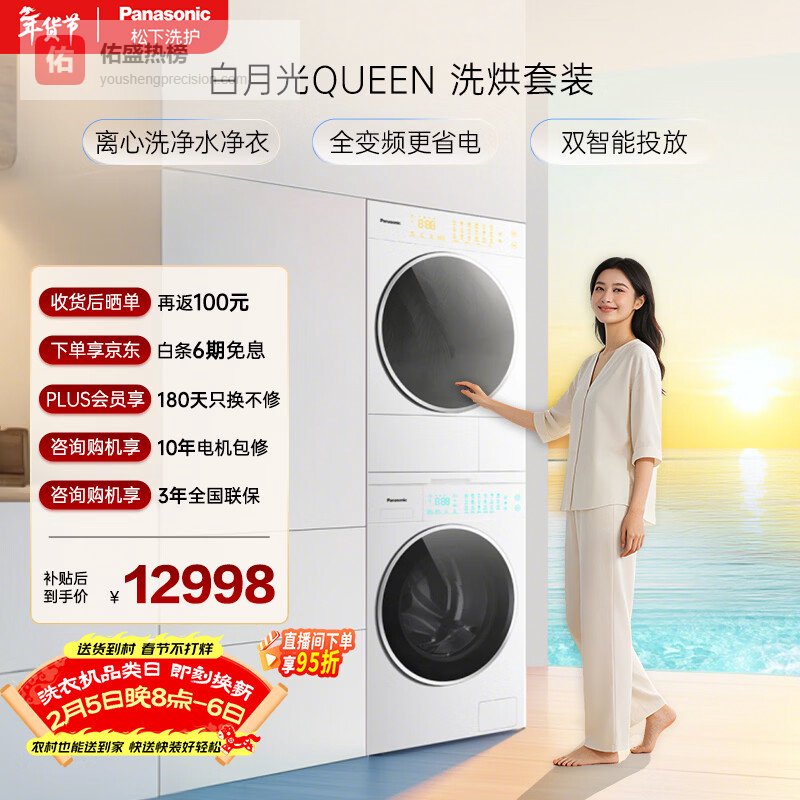 【京东自营】松下白月光Queen洗烘套装10KG滚筒洗衣机全自动+10KG热泵烘干机净水科技X1F6¥