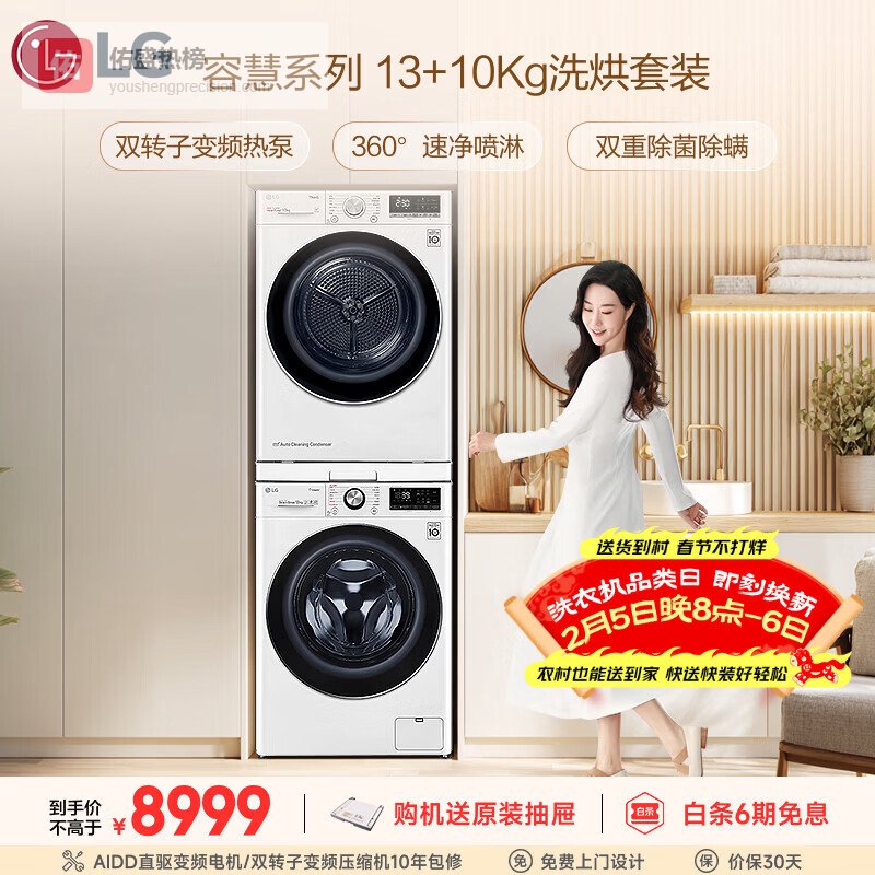【京东自营】LG容慧大容量洗烘套装13KG全自动滚筒洗衣机+10KG双变频烘干机360°速净喷淋FC¥