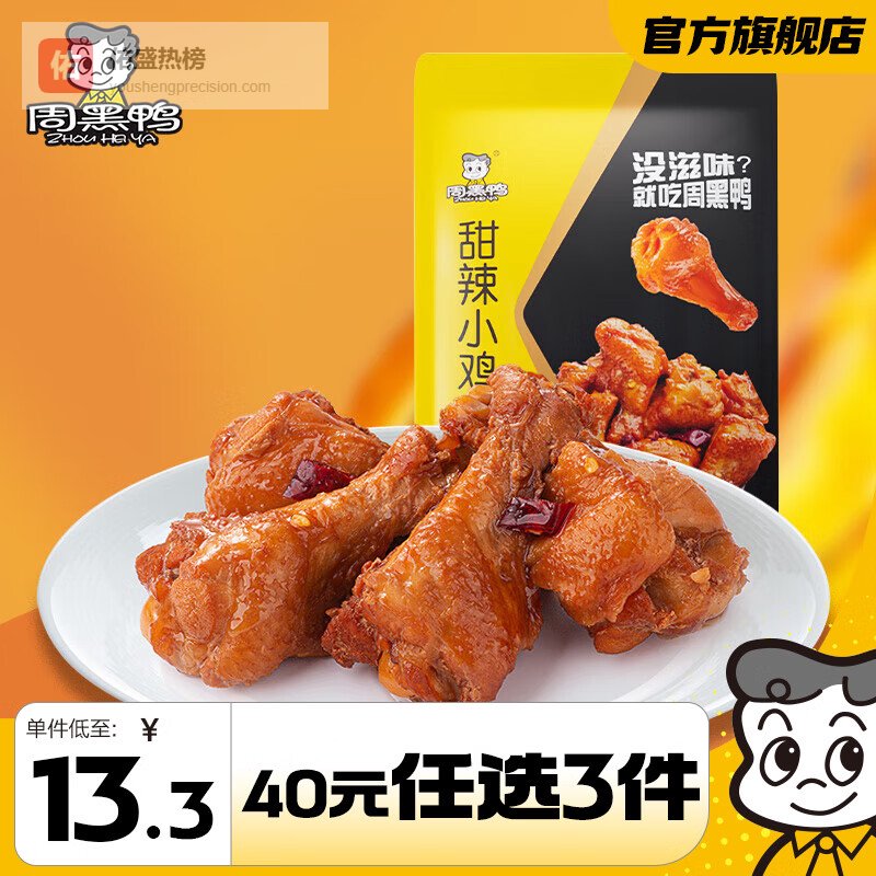 【品牌直营】周黑鸭【甜辣味】真空小鸡腿辣子鸡麻辣鸡丝多款任选休闲零食肉干肉脯甜辣味辣子鸡105g*1¥