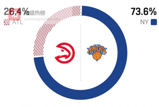赛前,美媒ESPN对本场比赛进行了胜率预测,尼克斯胜率高达73.6% ,老鹰胜率则仅有26.4% ,对比非常明显。