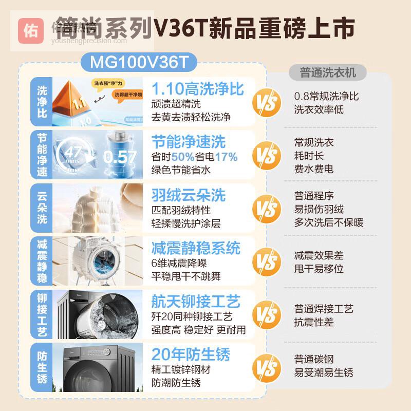第五款:美的全自动10公斤滚筒洗衣机MG100V36T