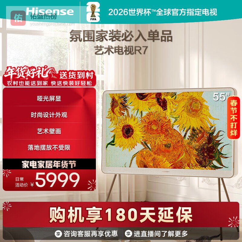 海信艺术电视55R7K 璀璨 55英寸 ULED百分区氛围家装必入 哑光壁画电视机智慧屏 以旧换新 ¥