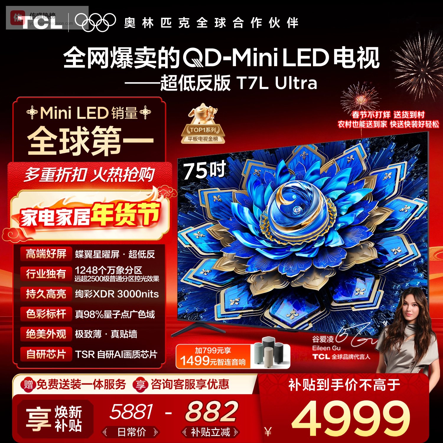 TCL75T7L Ultra,以卓越性能与智能科技,提升您的家庭娱乐品质,是智能家用电视的理想之选。