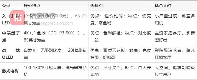 需谨慎决策的情况:- 观看距离<2.5米: 85英寸以上屏幕可能引发视觉疲劳,出现"像素颗粒感"。- 预算<5000元: 低价位大屏多采用低色域、低亮度面板,画质缩水反而降低体验。- 开放式客厅: 强光环境下若电视亮度不足(<500尼特),大屏会放大画面泛白问题。
