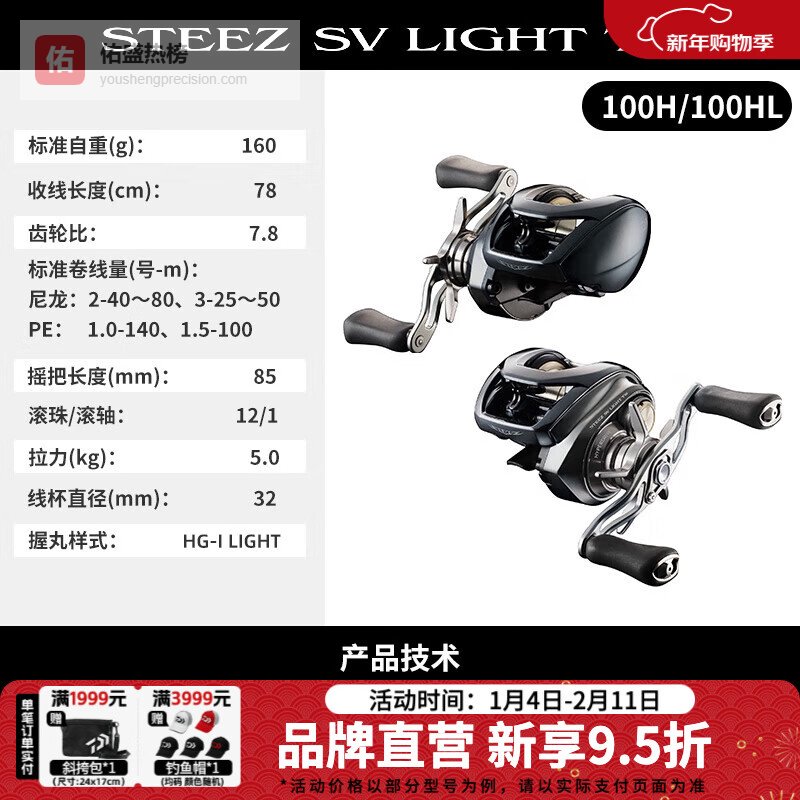 达亿瓦(DAIWA)26新款STEEZ 史帝兹SV泛用水滴轮微物路亚轮四弟子渔轮鳜鱼 100H/HL(7.8速比) 左手型(不支持使用/试用后退换货)¥