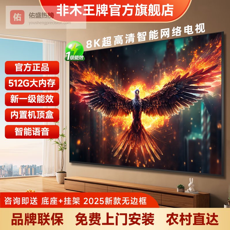 非木王牌【电视机排行前十名】8K智能超薄无边框防爆液晶电视机家用可壁挂客厅投屏语音网络防蓝光护眼电视 85英寸 极清8K智能无边框顶配版 智能语音网络版16+256G¥