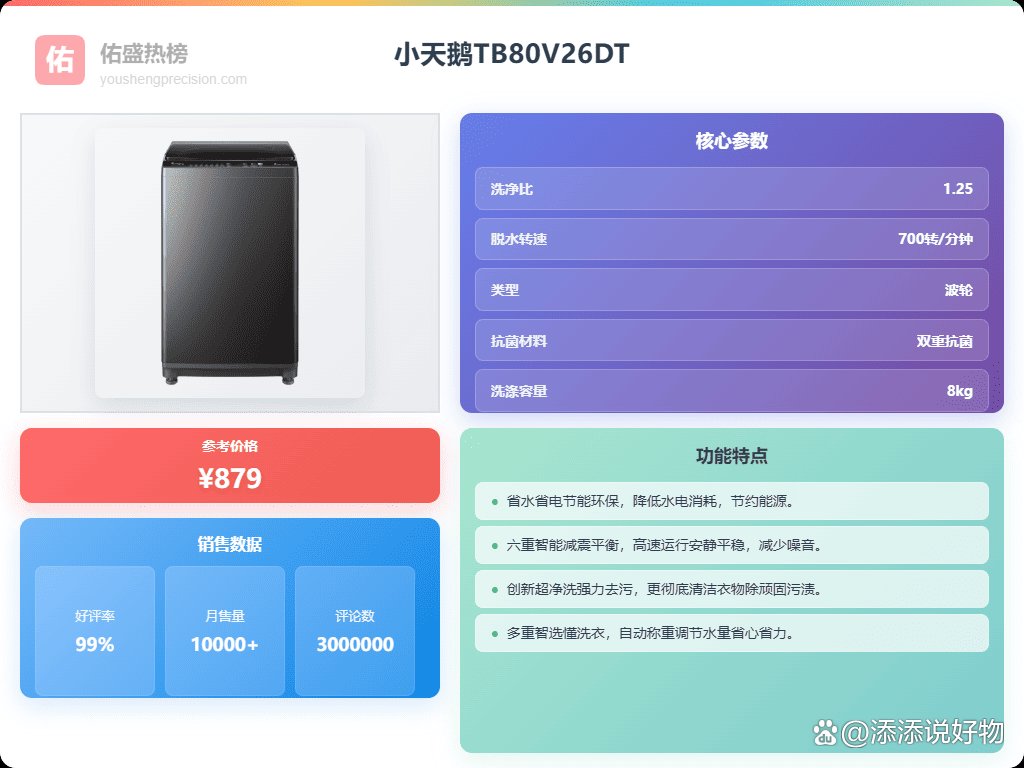 所以啊,我做了点功课,整理了一份2026年8公斤洗衣机选购攻略,精选了大家都在讨论的十大排名品牌。重点研究了下大家的评价,看看哪家在使用体验上更胜一筹,洗得干净、用着省心。价格方面我也都做了对比,争取给大家一个实在的参考。想入手一台靠谱的洗衣机,又怕选错的,这篇攻略你可得好好看看,希望能帮大家挑到心仪的洗衣机,真正做到“闭眼入,不踩坑”!接下来我整理了10款口碑不错的,大家可以看看。