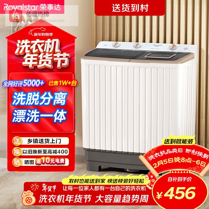 荣事达(Royalstar)半自动洗衣机8KG双杠双筒家用宿舍出租房双桶洗衣机甩干机洗脱分离 以旧换新 RP8030J¥