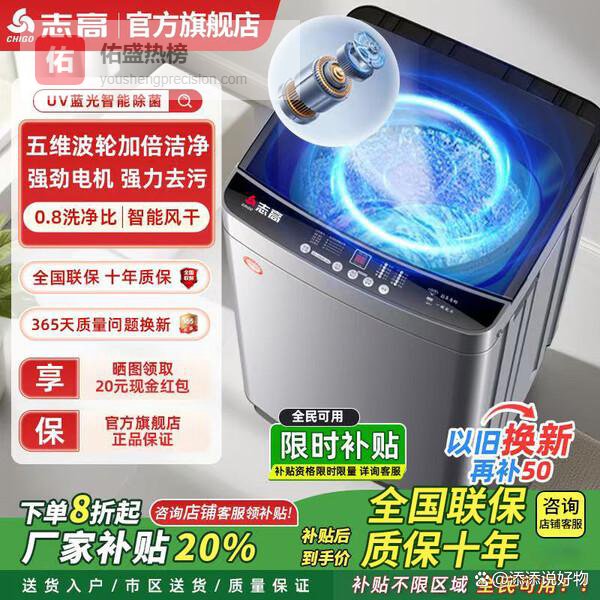 同时,这款洗衣机还支持多种洗涤程序,比如羊毛、羽绒、棉麻等,满足各种不同材质的衣物需求。它的桶自洁和风干功能,能保持内桶干净,减少细菌滋生,也不用担心洗完衣服还要自己清洗洗衣机内部,卫生又放心。整体来说,这款志高洗衣机挺实用的,能帮你轻松搞定日常洗衣烦恼。