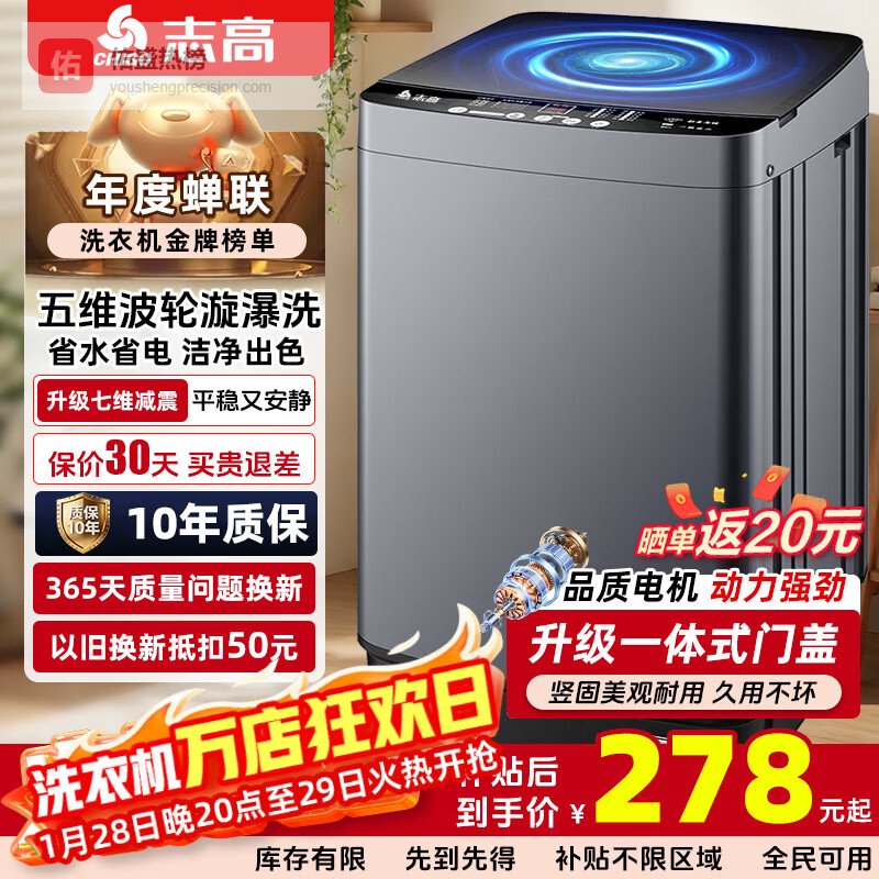志高(CHIGO)全自动洗衣机波轮宿舍迷你小型家用洗烘一体智能洗脱一体机 8KG玄武灰【升级款+智能风干+强动力电机】¥
