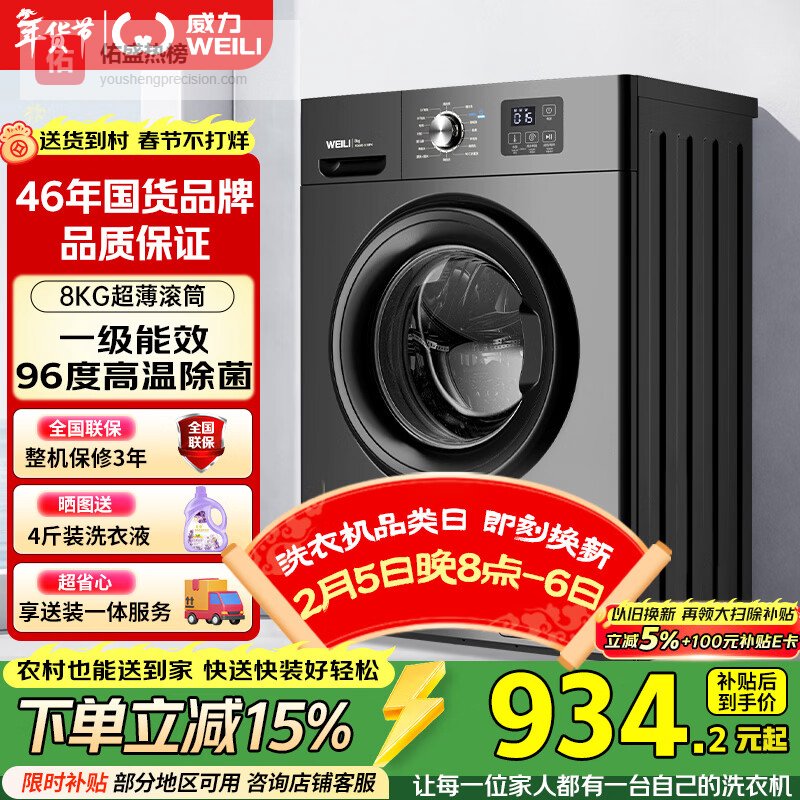威力(WEILI)滚筒洗衣机 8KG全自动 超薄嵌入一级能效 LED显示屏以旧换新送装一体XQG80-1016PX钛金灰国家补贴¥