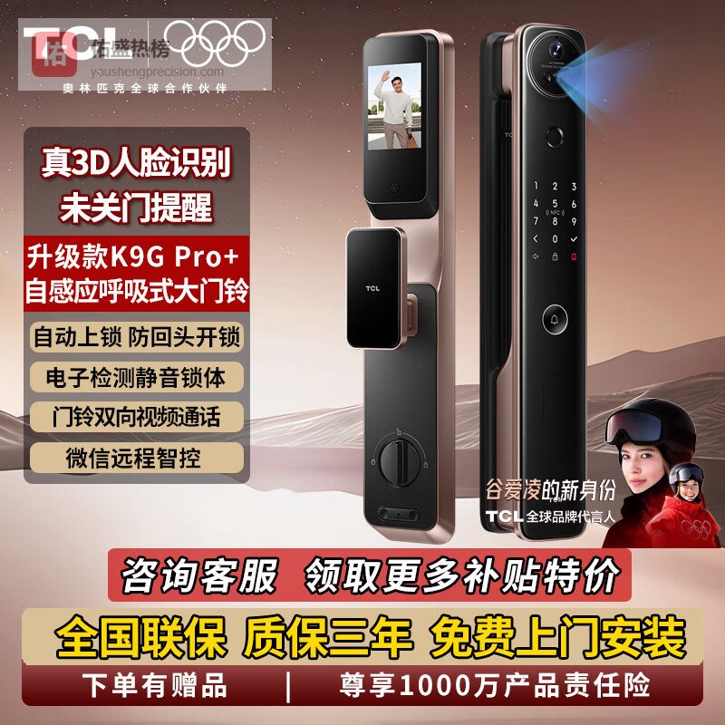 【品牌专卖】TCL人脸识别智能锁可视猫眼指纹锁K9GPro+升级版防盗未关门提醒门锁升级版K9GPr¥