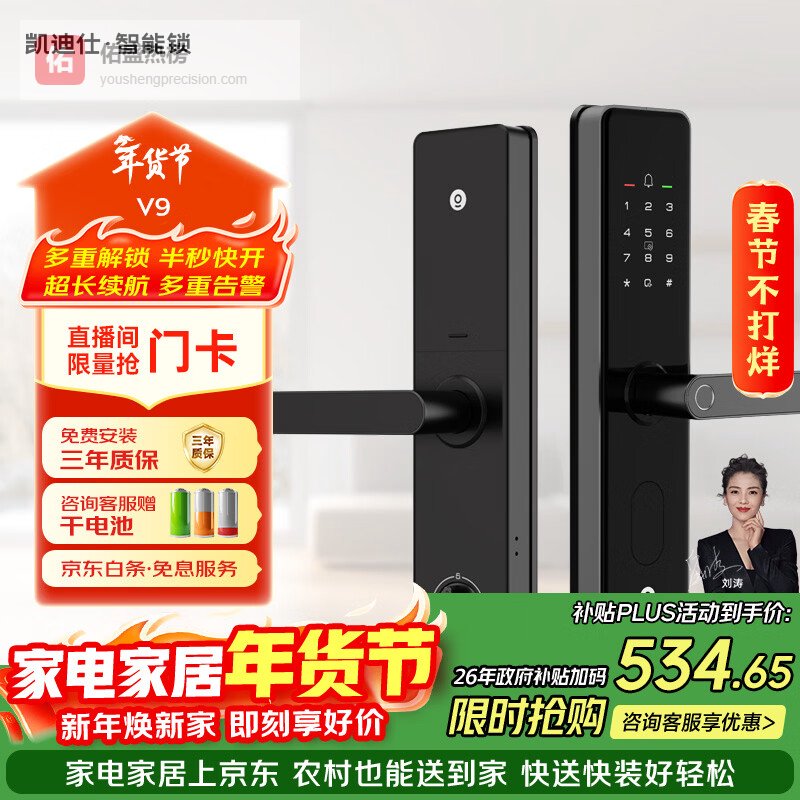 【京东自营】凯迪仕智能门锁指纹锁防盗门锁密码锁入户门电子智能锁V9¥