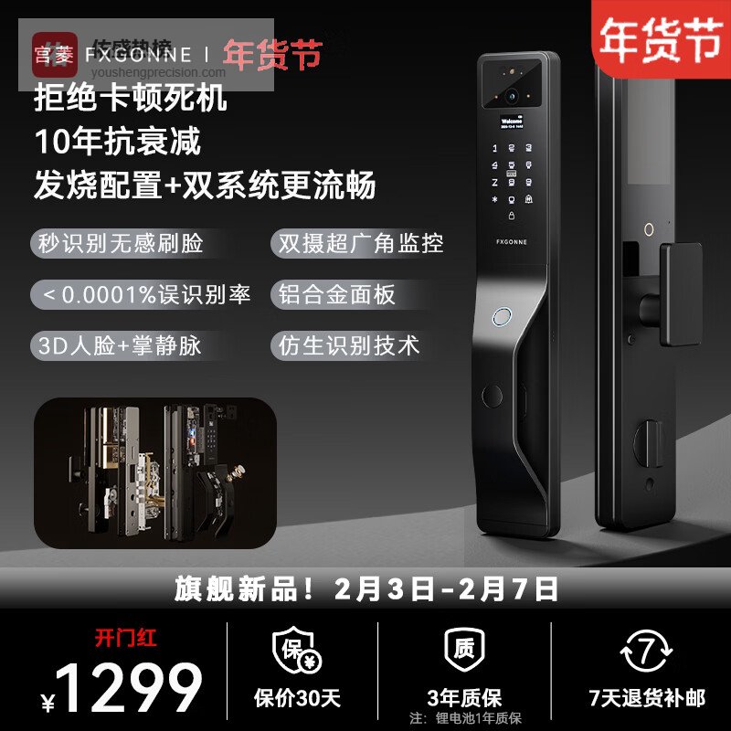 【品牌直营】宫菱【官方店】全自动智能门锁家用人脸指纹掌静脉电子密码防盗锁欧盟认证-非常规双安防智能锁¥