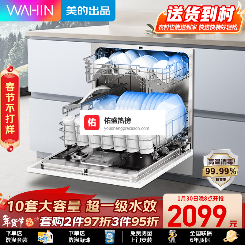 2、华凌 10套洗碗机嵌入式台式消毒柜一体机