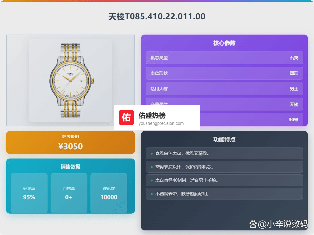 其实选表就跟选对象一样,适合自己的才是最好的。2026年了,买表也别光看牌子,关键是戴着舒服、看着顺眼,而且功能也得实用。像我个人比较看重走时准不准,毕竟谁也不想戴个动不动就慢几分钟的表。接下来我整理了6款口碑不错的,大家可以看看,希望能帮大家找到心仪的那一款。